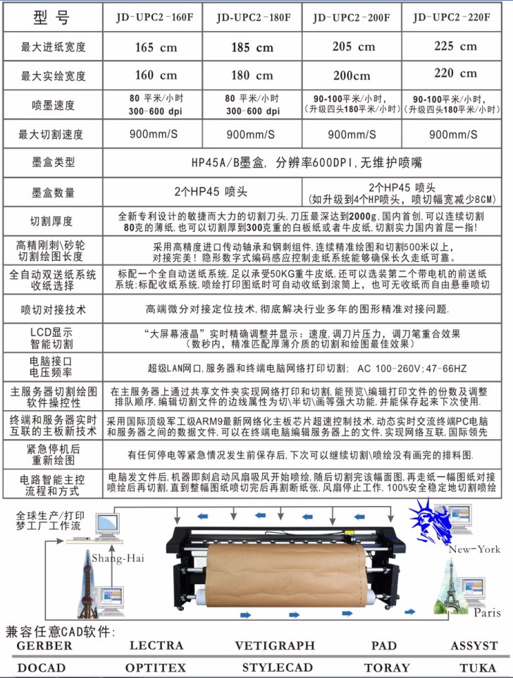 锦德UPC喷墨切割机器参数规格与说明: